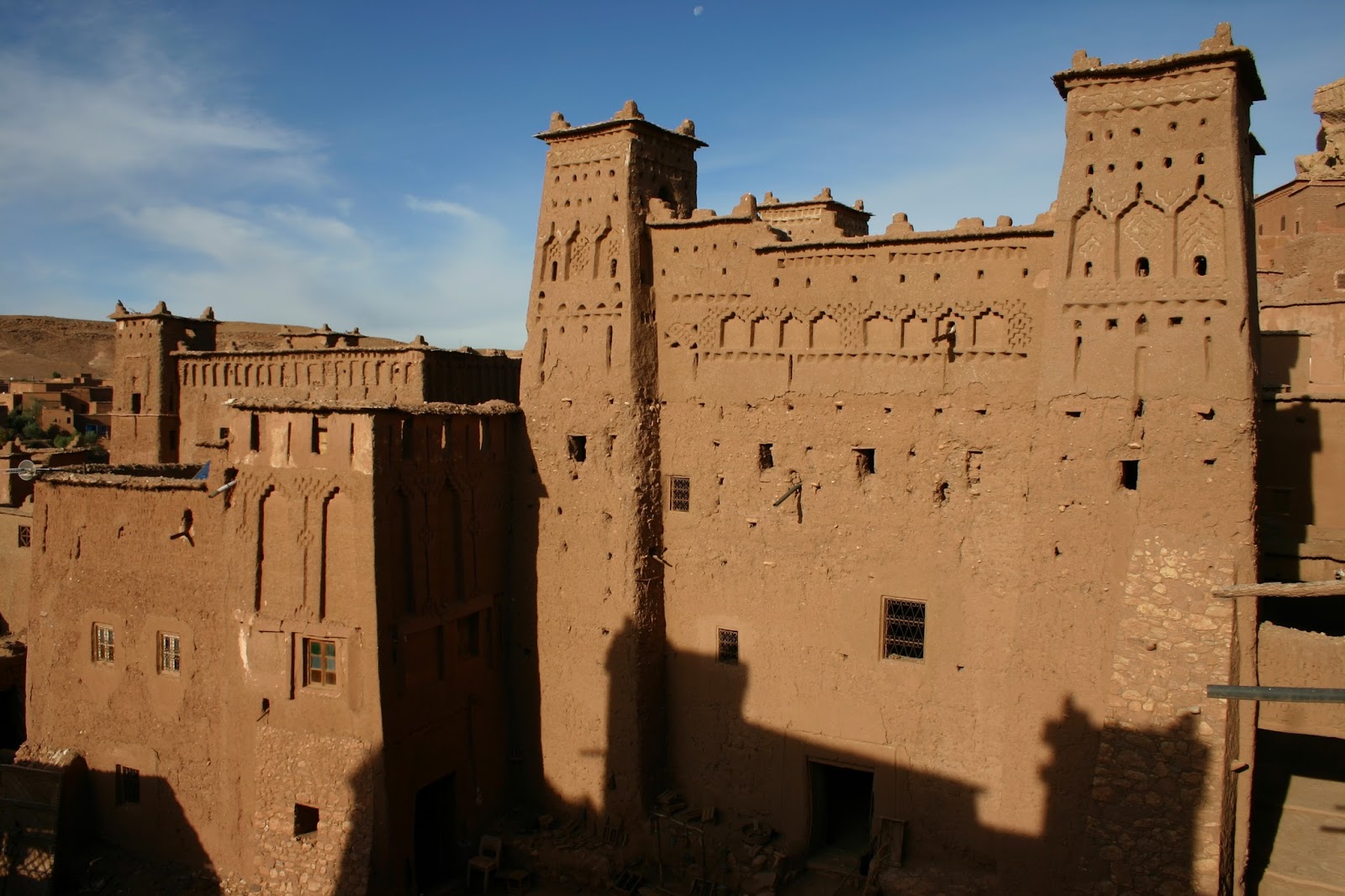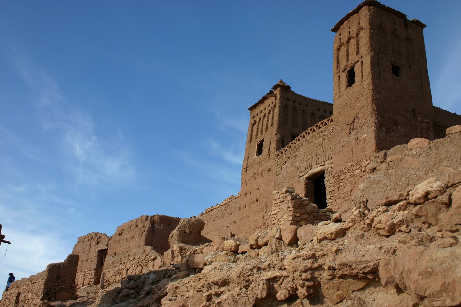 Las kasbah son recintos fortificados de origen bereber, un lugar donde protegerse contra intrusos y ataques, pero también de las tormentas de arena y de las inclemencias del tiempo que podía matar al ganado.Las Kasbah forman parte de la arquitectura tradicional marroquí. Están hechos de ladrillos de adobe (a partir de arcilla, estiércol y paja) que después de secados al sol, puede durar siglos.